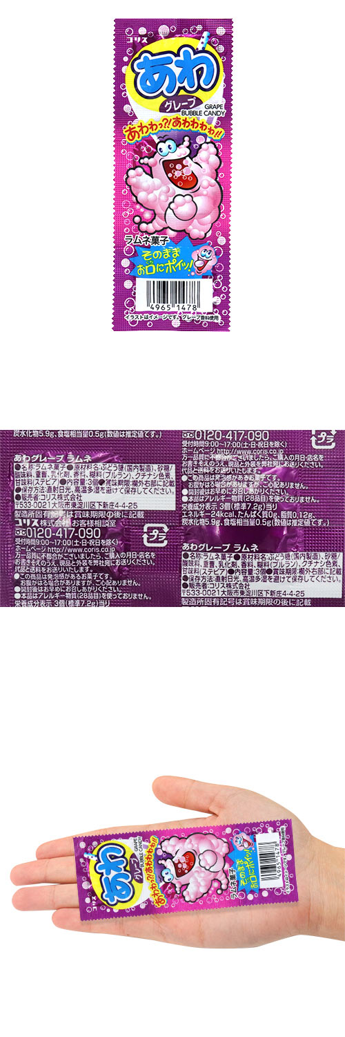 人気の飲料系フレーバー「グレープ」のおいしい味です。1袋に3個付いております。
