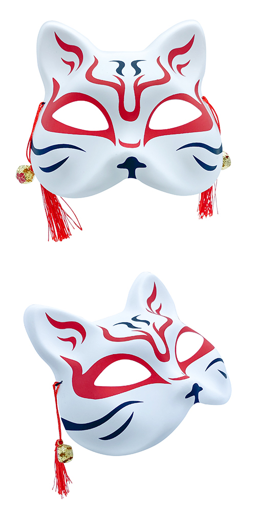 歌舞伎柄の猫の半面。推しカラーの9色展開。タッセルと鈴付き。