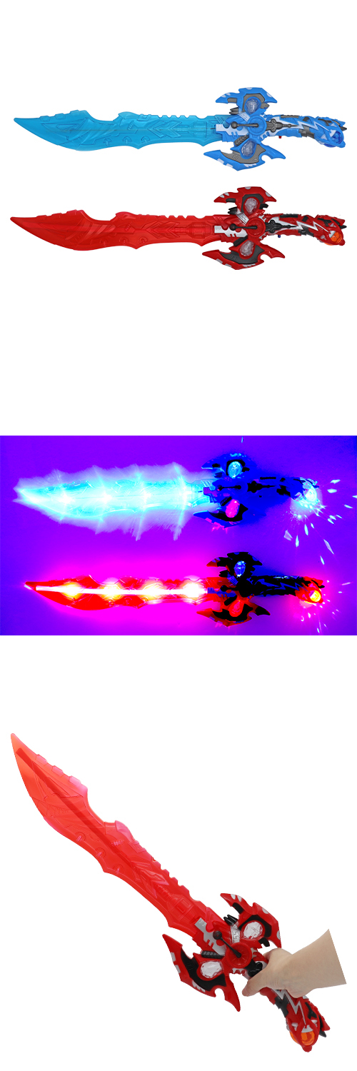 原色カラーの光るかっこいい龍大剣!ボタンを押すと剣が光って音が鳴ります!本体色は3色展開です※種類のご指定は出来かねますのでご了承ください。光り方、音は1各1パターン。単3電池3本内蔵しており、電池交換可能です。